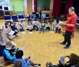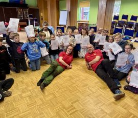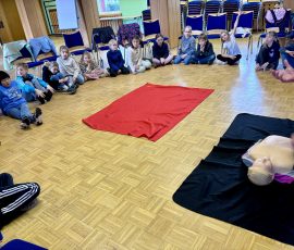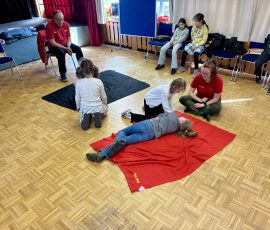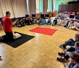 Niemand ist zu klein, um in Notfallsituationen Hilfe leisten zu können! Schon beim „Hilfe holen“ bzw. „jemandem Bescheid geben“ fangen Lebensrettende Maßnahmen an. Spielerisch lernten unsere Drittklässler die Grundlagen der ersten Hilfe kennen.