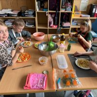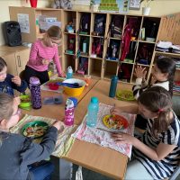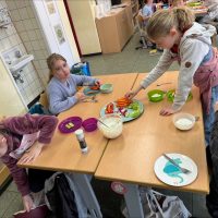 Gesunde Ernährung kann so einfach sein und schmeckt lecker! Die Drittklässler hatten viel Spaß beim Zubereiten von „gesunden“ Snacks. Guten Appetit!